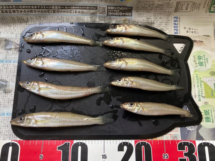 9時半に納竿し、釣れたキスは9匹で、外道の