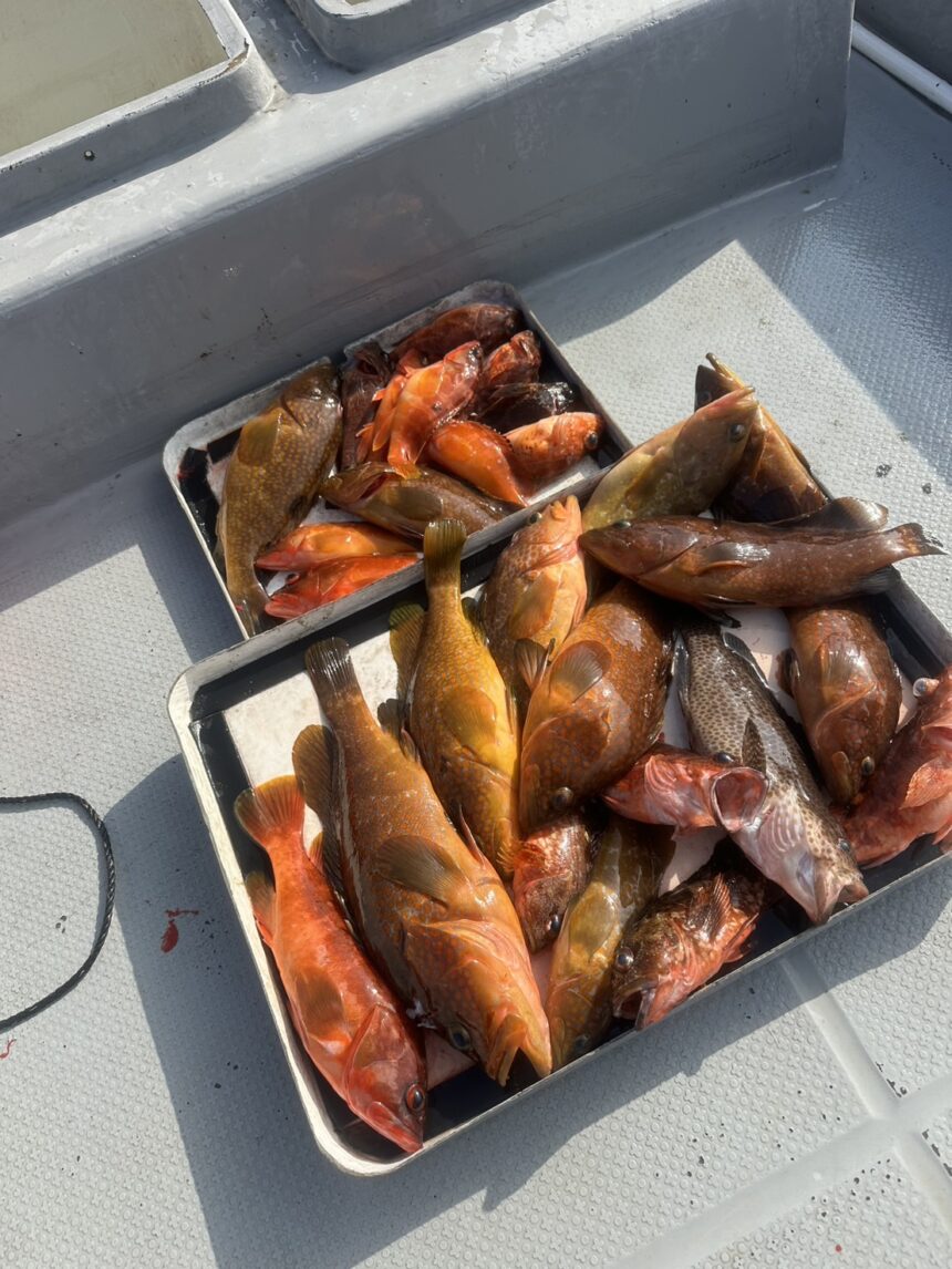 タイラバ・インチクを使用し根魚の良型が釣れております。お客様の釣果情報になります。