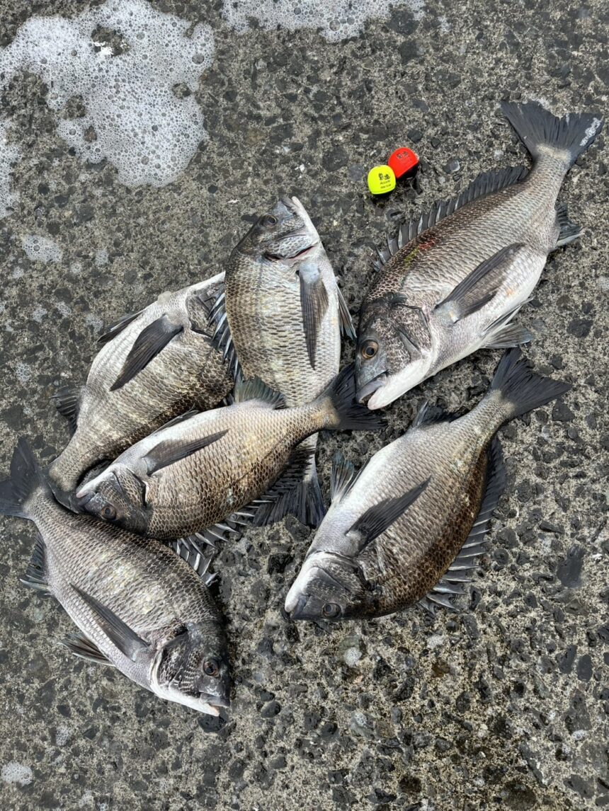 坂ノ市一文字へ乗っ込みチヌを狙ってフカセ釣りへ行ってきました!エサはオキアミ1枚と集魚材3袋使用。最初は30㎝チャリコが釣れ、そこからはアタリ連発♪5時間の釣行でアタリは10回ほど、バラシ3~4回 チヌ6キャッチとなかなか楽しい釣行でした!(^^)!魚も乗っ込み個体でお腹パンパン!