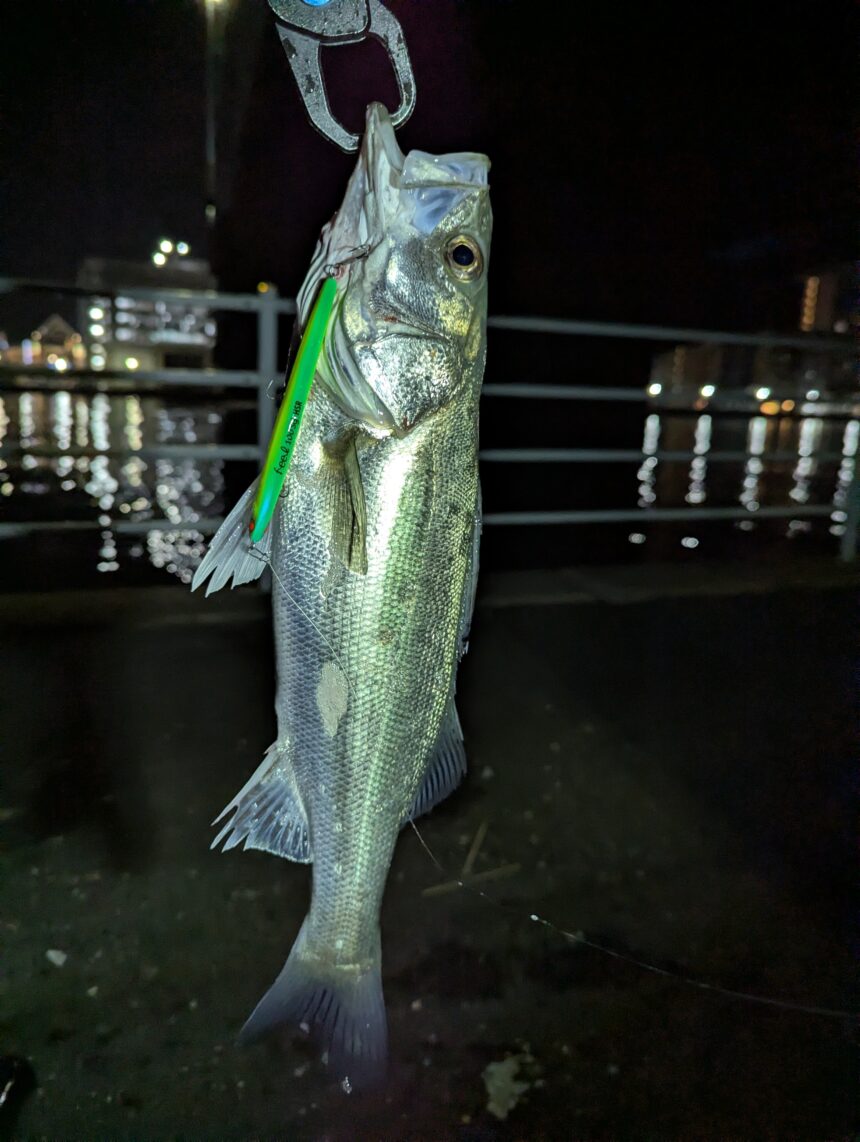 フィール ハスラー100SGを使いスズキの50㎝程が釣れております。表層でアタリが集中したそうです。