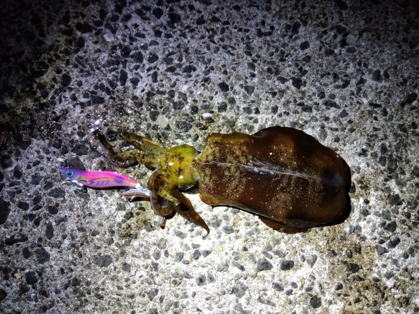 神の島三丁目のエギングで、1.5㎏のアオリイカが釣れたそうです。