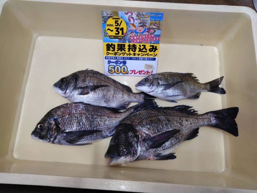 フカセ釣りに行かれ、39.5cmを頭に4匹。大きいのはノッコんでいましたよ。