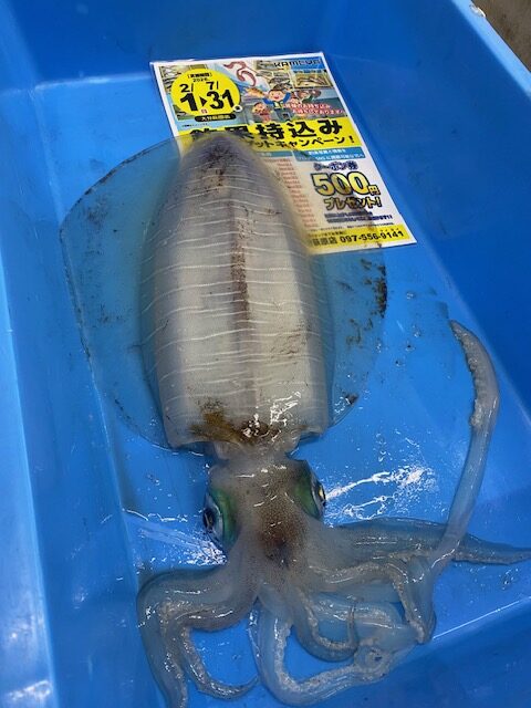 本日初めてのイカ釣りの釣果でな、な、なんと!!いきなり2キロOVERを釣り上げたとの事です!