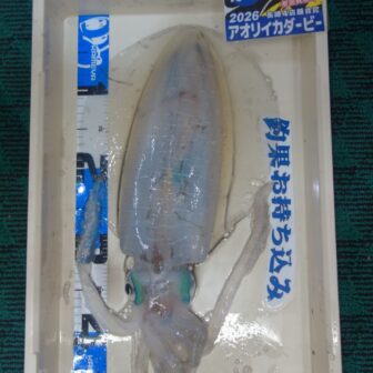 本日、お客様より釣果のお持込みがございました👀✨小江の方でエギングでの釣果、1.02㎏の立派なアオリイカです🦑🦑🦑1㎏越えの大きなイカの釣果が増えて来て春の…