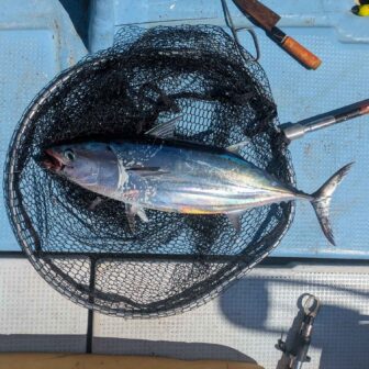 釣行者 スタッフ酒井アジ曽根にて、冷凍カタクチイワシを撒いた、完全フカセにて本ガツオ4.2㎏まで4本、キメジ「キハダマグロの子」4.7㎏まで2本の釣果サメ…