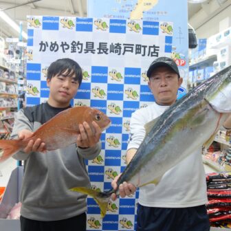 持ち込み釣果です。樺島沖にてタイラバを、マダイ45cm 1.15kgを筆頭にハタ複数、ボイルにキャスティングでヤズ7.6kgをゲット(*'▽')!、お見事です。野母崎沖…