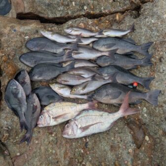 釣行者 スタッフ 酒井香焼沖磯 裸瀬にてクロ~43㎝イサキ~40㎝マダイ~50㎝の釣果ですタナはクロ2ヒロ~3ヒロ イサキ、タイ1本前後で良くあたります