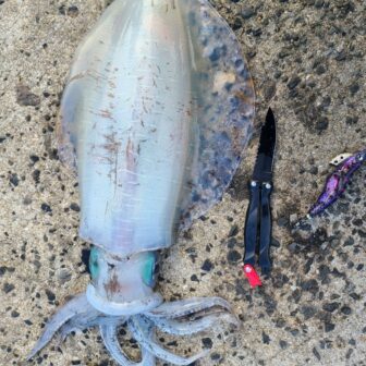 長崎北部でのエギングで2kgまでのアオリイカが3杯釣れたそうです。紫系のエギに反応よく午前中の釣果です。