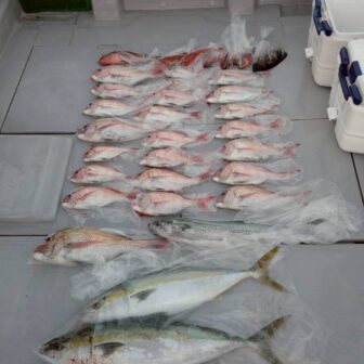 戸町店の浦谷です。遊漁船凪さんより鯛ラバ&SLJでの釣果情報を頂きました。真鯛の釣果がかなり上向いており、真鯛の他、10㎏オーバーの鰤やメーターオーバー…