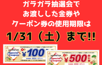 ガラガラ抽選会の金券、クーポン券の使用期限告知