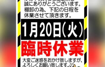 臨時休業のお知らせ!!