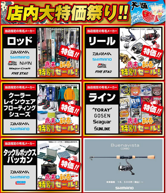 本日よりかめや釣具全店で「歳末&新春特別セール」がスタート致しました!!