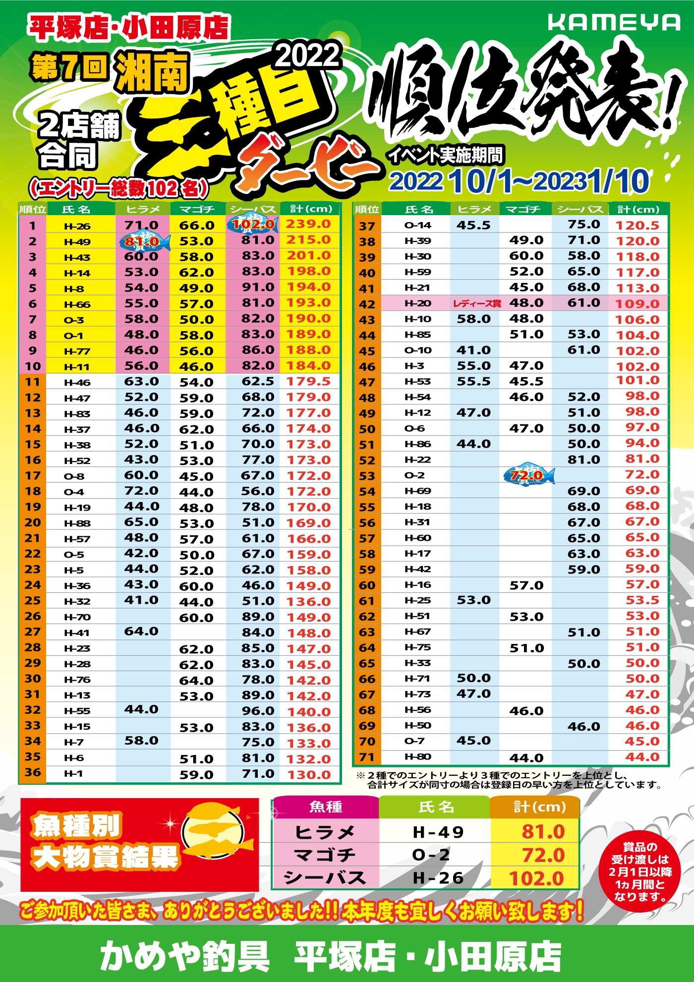 第七回湘南3種目ダービーの再集計が完了致しました。