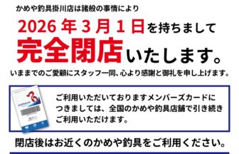 こんにちは、かめや釣具愛知美和店です