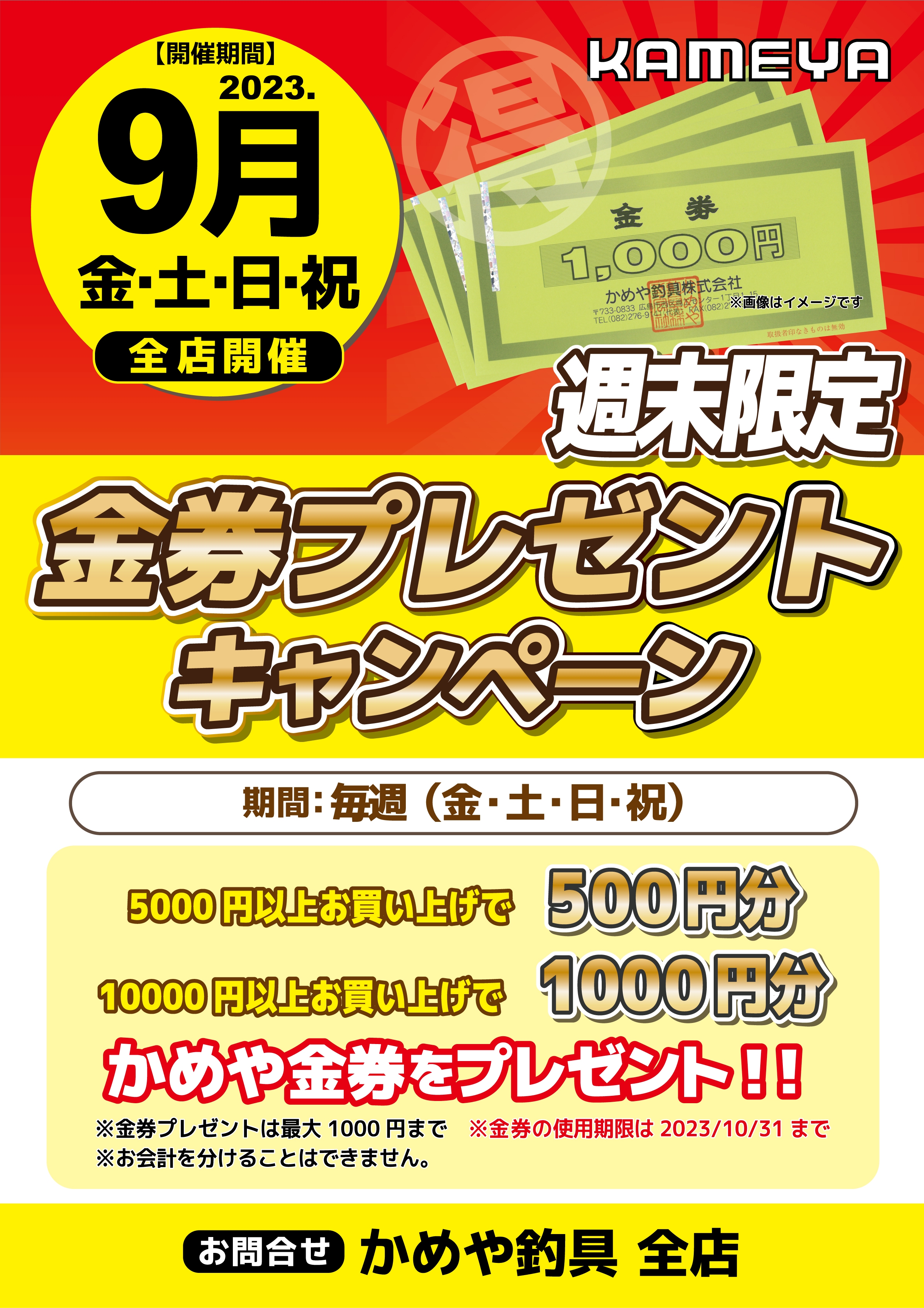 本日より、かめや全店で金券プレゼントキャンペーンが実施されております。
