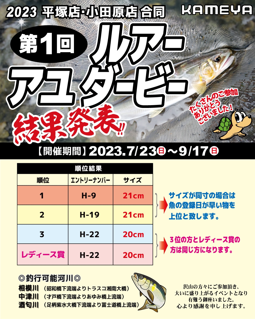 平塚店・小田原店「第1回ルアーアユダービー結果発表!!」