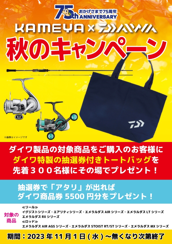 本日、11/1~KAMEYA×ダイワ 秋のキャンペーンを行っております。