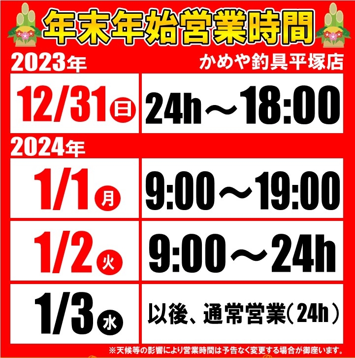 今年も一年 かめや釣具平塚店を御贔屓頂きまして誠に有難う御座います。