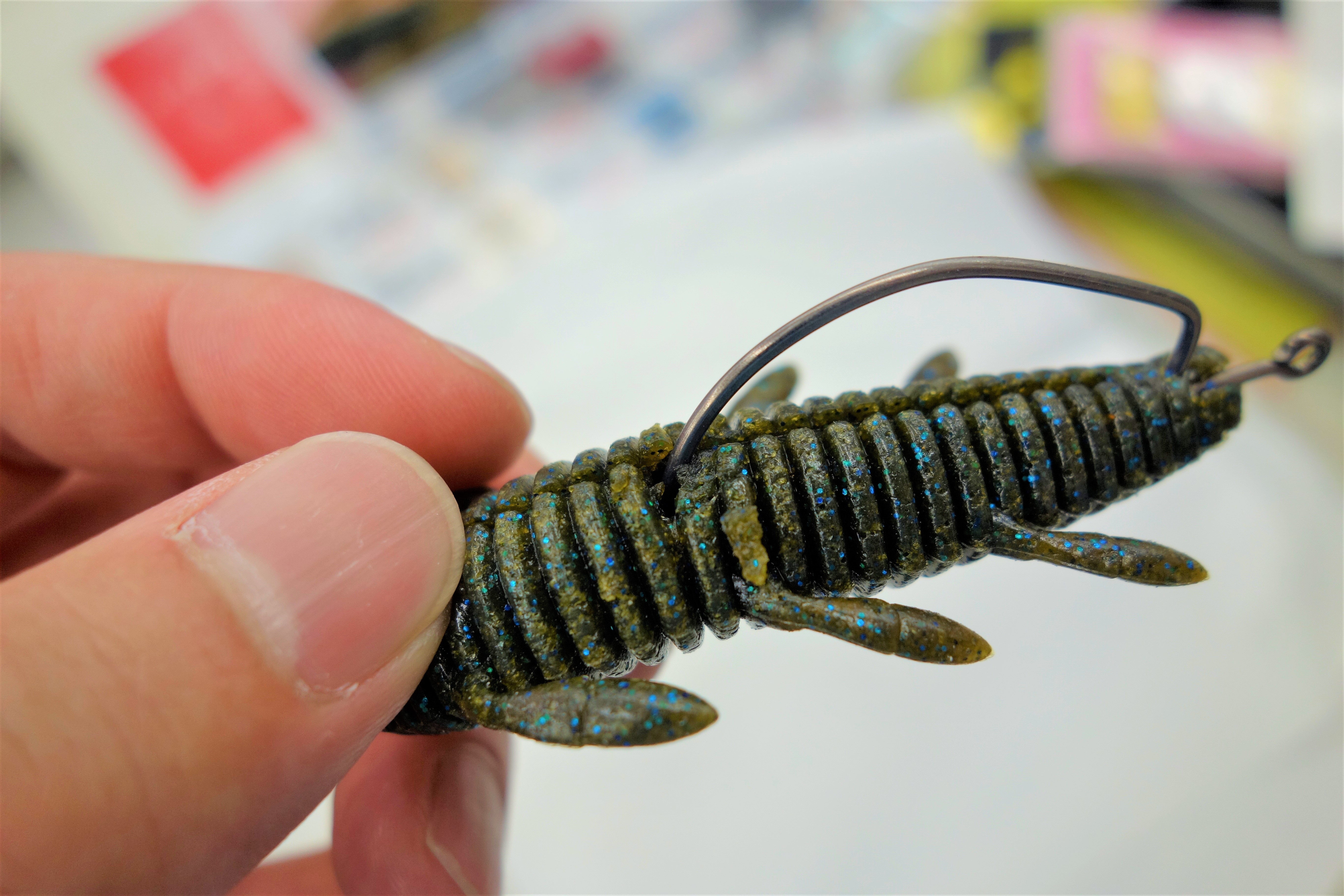 高比重ワームあるあるの挿し口やフックを貫通させた部分はどうしてもボロボロになりますよね…