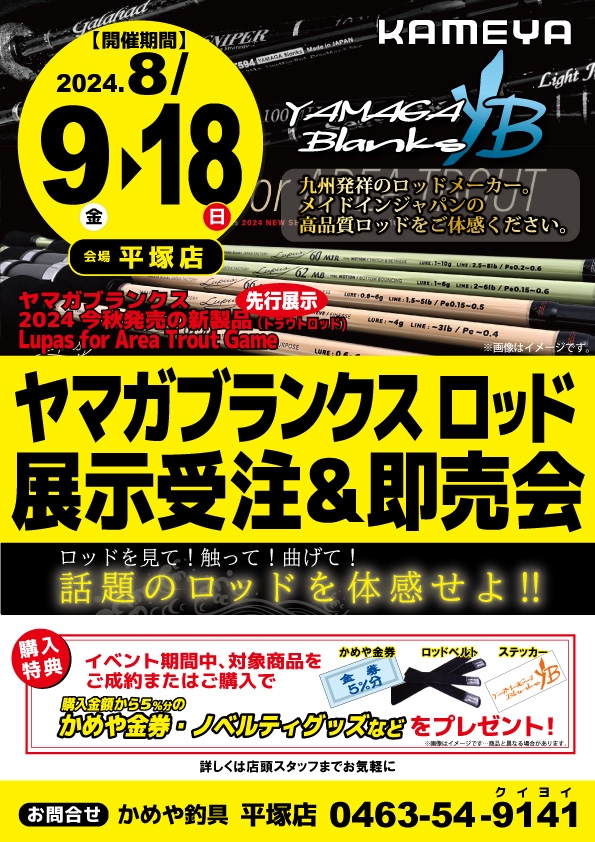 「ヤマガブランクス ロッド展示受注会&即売会」を開催致します。