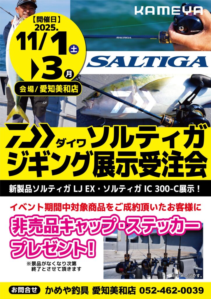 11/01~11/03の3日間は店頭にて『ダイワ ソルティガ ジギング 展示受注会』を開催します!