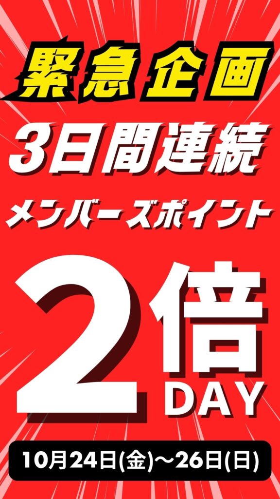 10/24(金)~10/26(日)までの3日間メンバーズポイント2倍DAY」を開催致します!!!