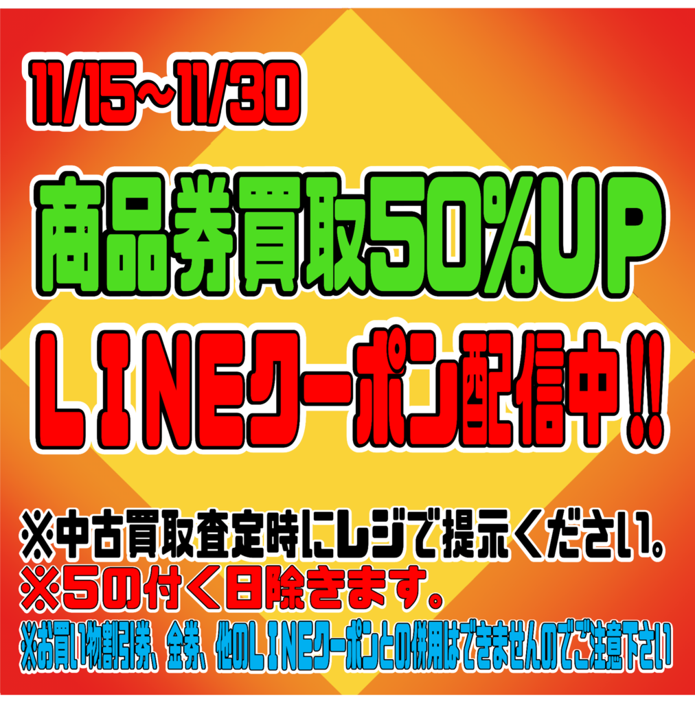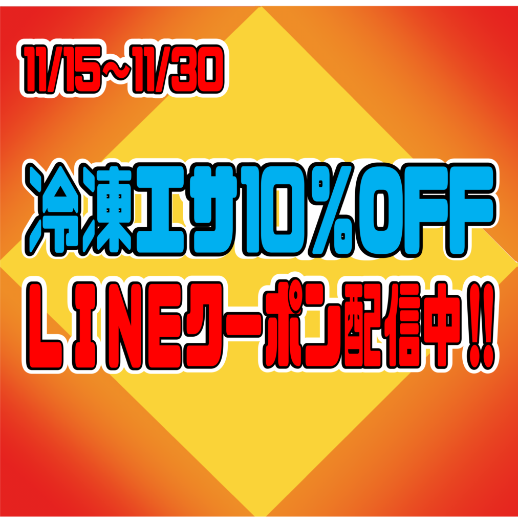 11月15日より商品券買取50%UP&冷凍エサ10%割引クーポン配信決定!