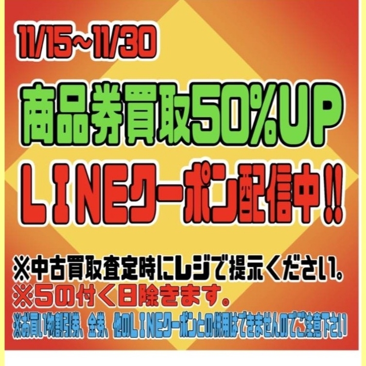 また、現在商品券中古買取がとってもお得なLINEクーポンも配信中です(#^.^#)