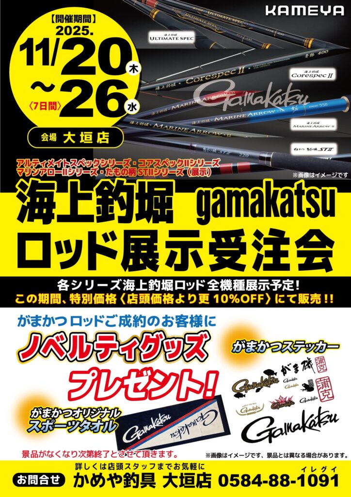 がまかつ海上釣堀ロッド展示受注会開催中