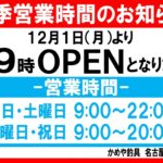 【冬季営業時間のお知らせ】 名古屋みなと店