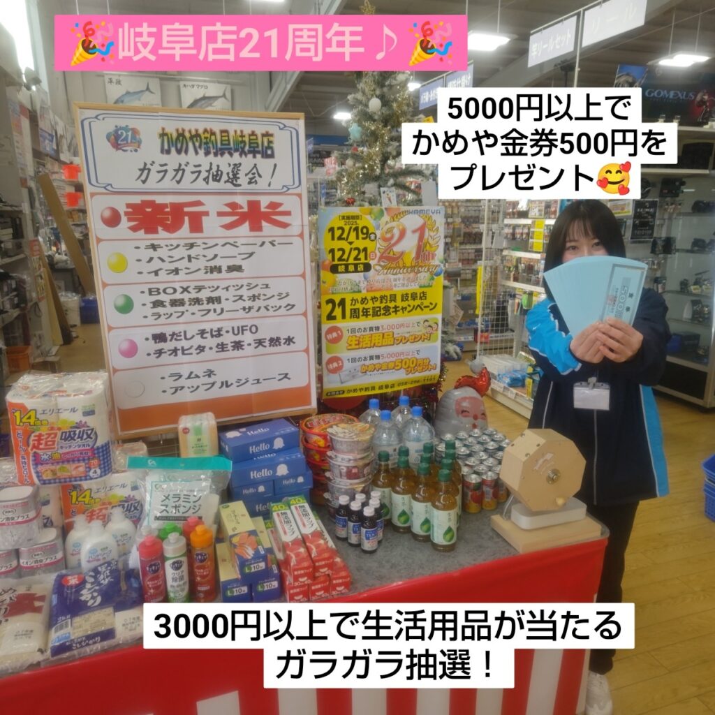 こんにちは~(^^♪ 岐阜店店長松下です♪  19(金)20(土)21(日)の3日間にて、岐阜店周年祭りを開催しております(*^^)v 3000円以上のお買い上げ時に【ガラガラ抽選くじ】 5000円以上お買い上げ時には【かめや500円金券】をプレゼント致します(^_-)-☆ この週末は、是非かめや岐阜店にてお買い物を楽しんで下さいませっ。皆様のご来店を心よりお待ちしております♪♪