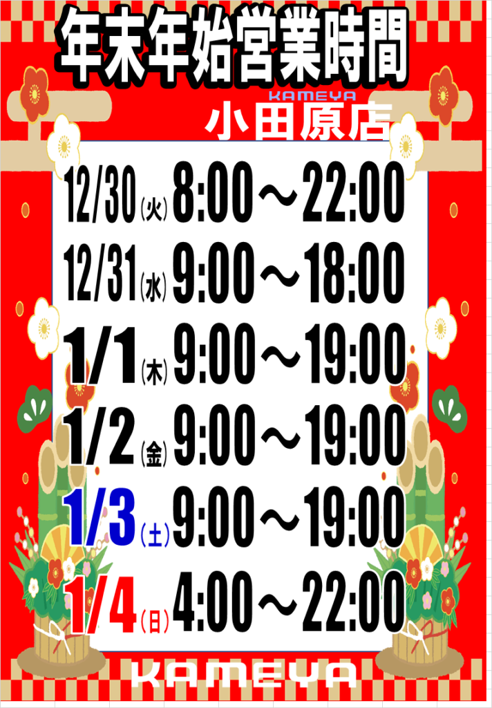 年末年始営業時間変更のお知らせ