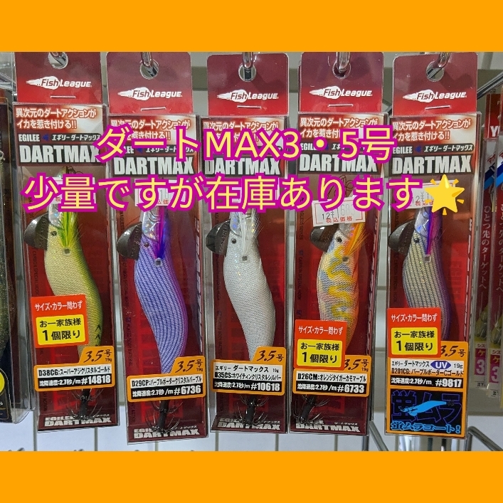 少数ですがなかなか入手できないエギとなっておりますので欲しいお客様はお早めにご来店下さい(*^^*)