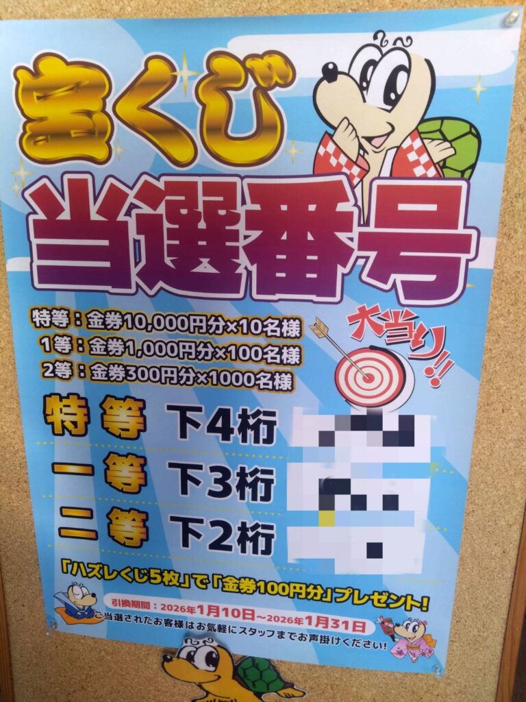 かめや宝くじの当選番号を掲示しております!ハズレてしまってもハズレクジ5枚で金券100円分プレゼント!店頭でご確認下さいませ。