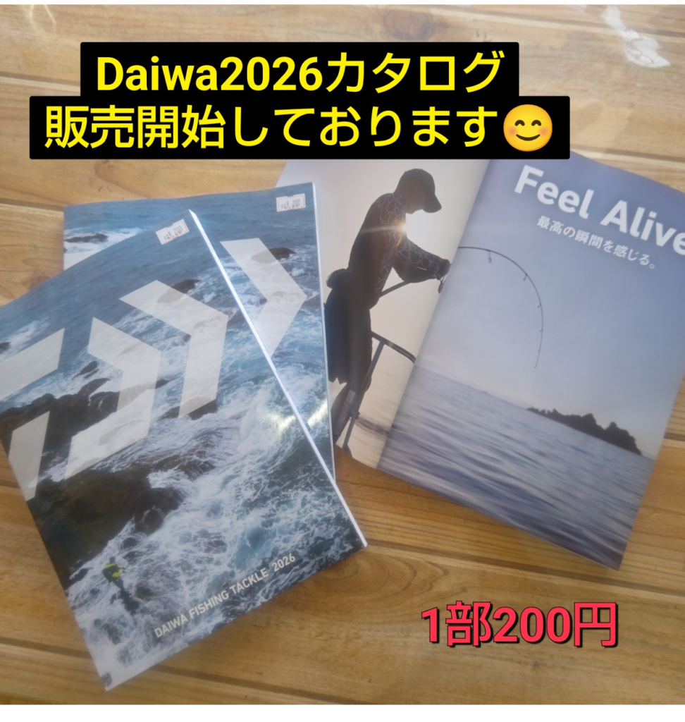 こんにちは!かめや釣具岐阜店松下です(*^^)v 2026年ダイワ総合カタログが入荷しております(^^♪ 1冊200円で販売しております。 毎年早々に無くなってしまいますので、欲しい方はお早めにご来店をお願い致します(^_-)-☆ (世の中の流れで、紙媒体での印刷物は年々少なくなってきております)