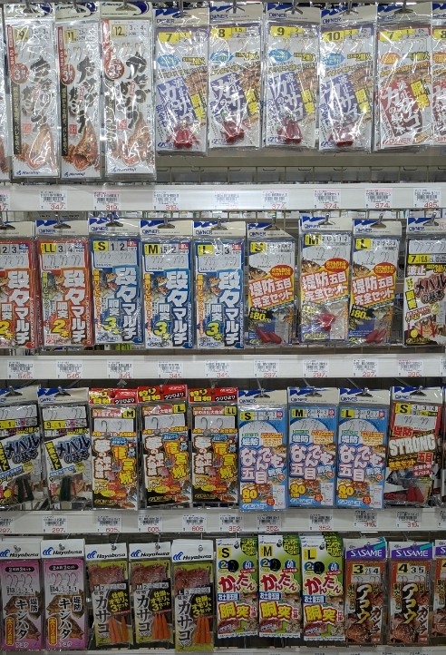 画像のカサゴ仕掛け各種は胴付き仕掛けとなっており、オモリ、餌を付けて堤防際や根回りに落とすだけで狙う事が出来ます(^^♪