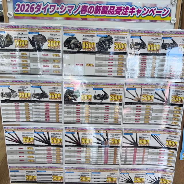 また、ダイワ・シマノ新製品受注キャンペーンも開催中!