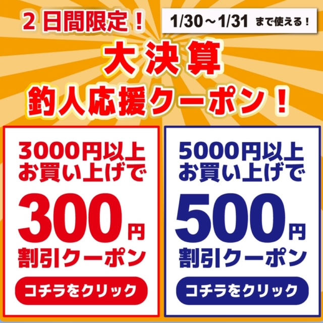 本日より2日間限定!大決算釣人応援LINEクーポン配信中
