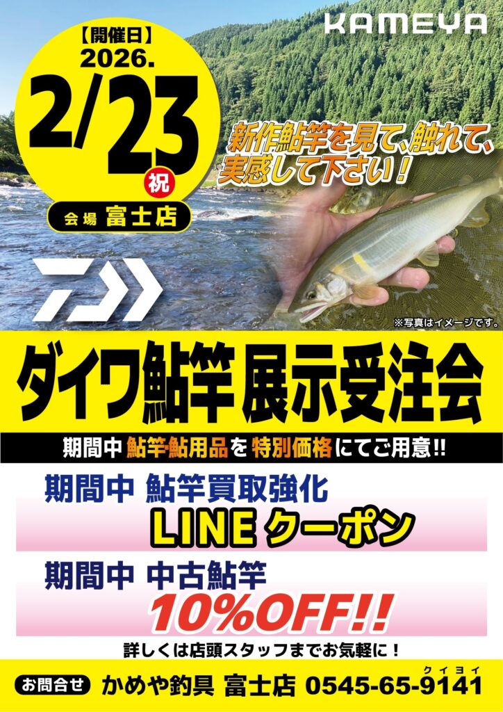 2/23(月)祝日「ダイワ鮎竿展示受注会」を開催致します。