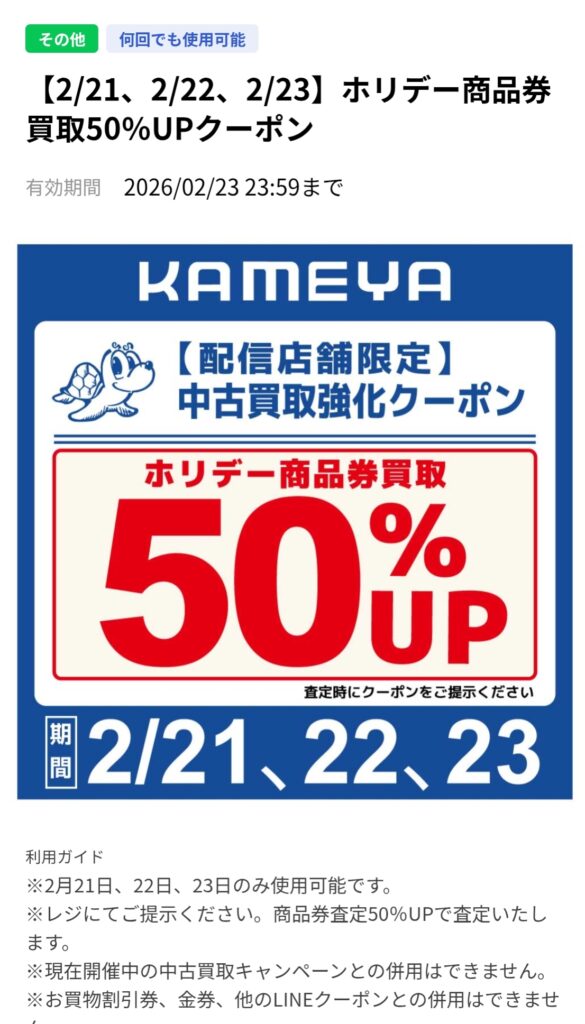 期間中、中古買取の際商品券買取でこちらのクーポンを提示して頂けると