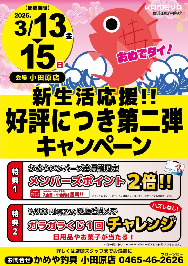 好評につき第2弾新生活応援!キャンペーン開催決定‼期間中に3000円以上ご購入のお客様にガラガラくじ1回チャレンジ出来ます!日用品やお菓子が当たるキャンペーンとなります是非是非奮ってご参加ください。更にメンバーズポイント2倍キャンペーンも開催!期間中はポイントが2倍になりますのでポイント大漁獲得の機会をお見逃しなく‼