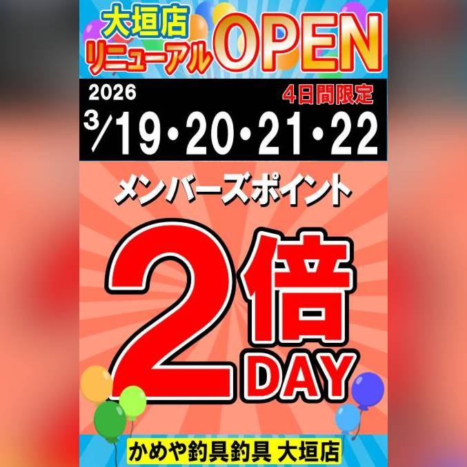 かめや釣具大垣店は3月19日にリニューアルオープンで御座います!