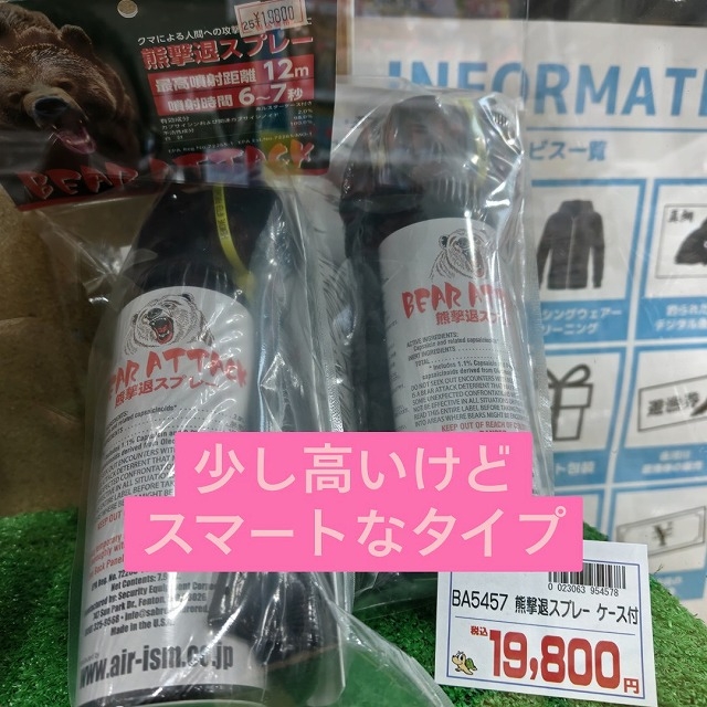 こんにちは!かめや釣具岐阜店松下です。【熊スプレー各種】再入荷のお知らせです(*^^)v いよいよ熊の本格的な活動シーズンとなって参りました。渓流釣り、山菜採り、キャンプ、登山にオススメです。荷物は1個増えますが(*´Д`) 350mlのペットボトル飲料と同程度の重さ、大きさの荷物1個増えるだけで、命が守れるなら!!用意して備えておく価値は十分にあると思います!! 複数人で行動をするなら、誰か一人がもっていれば安心だと思いますよ(^_-)-☆