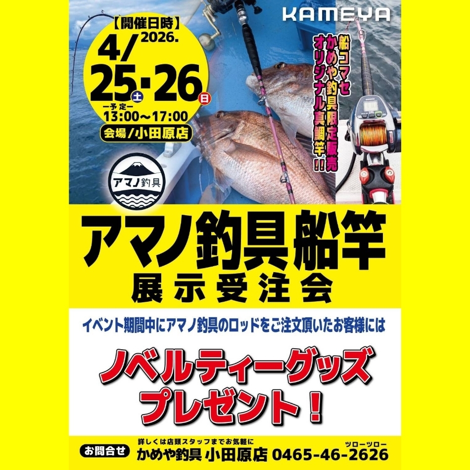 4月25.26日アマノ釣具船竿展示受注会開催!(^^)!