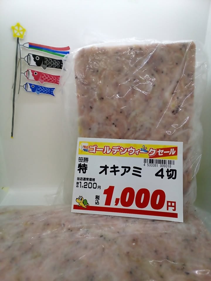 こんにちは!かめや釣具平塚店です🐢🎣 ただいまゴールデンウィークセールとしてオキアミ特4切りのセールを行なっております! セール期間は5月10日までとなっております! 皆様のご来店お待ちしております😊