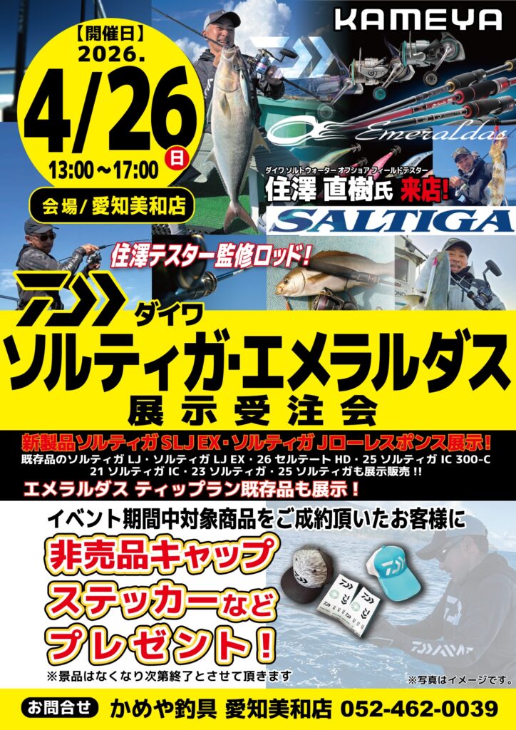 4月26日(日)13:00~17:00は墨長こと住澤テスターにご来店いただき、『ソルティガ・エメラルダス展示受注会』を開催します!