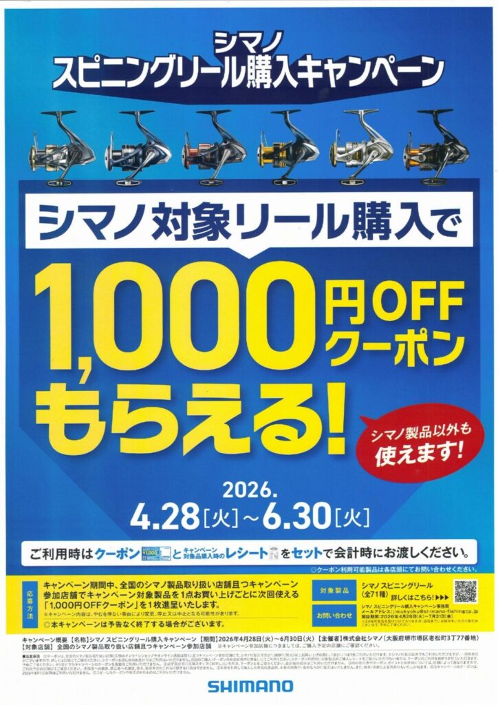 シマノ1000円クーポン配布中!!