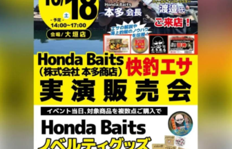今年もHondaBaits(株式会社本多商店)快釣エサの実演販売会を開催させて頂きます♪日付 2025年10月18日(土)時間 14:00~17:…