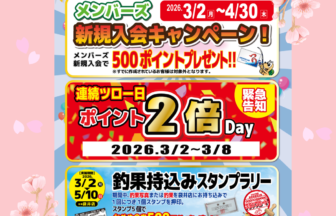 袋井店限定!釣り人応援キャンペーン開催中です📢3/2~4/30 メンバーズ新規入会キャンペーン!メンバーズ新…