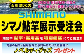 皆様こんにちは、かめや釣具清水店です♪本日まで「シマノ鮎竿展示受注会」を開催中♪♪売るのも買うのも大変お得なイベントとな…